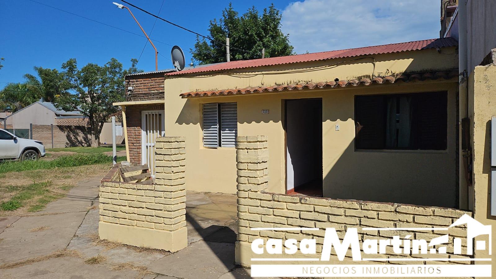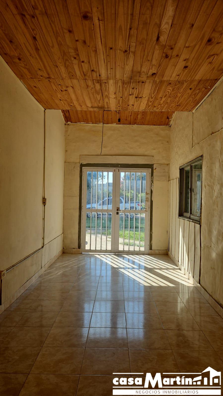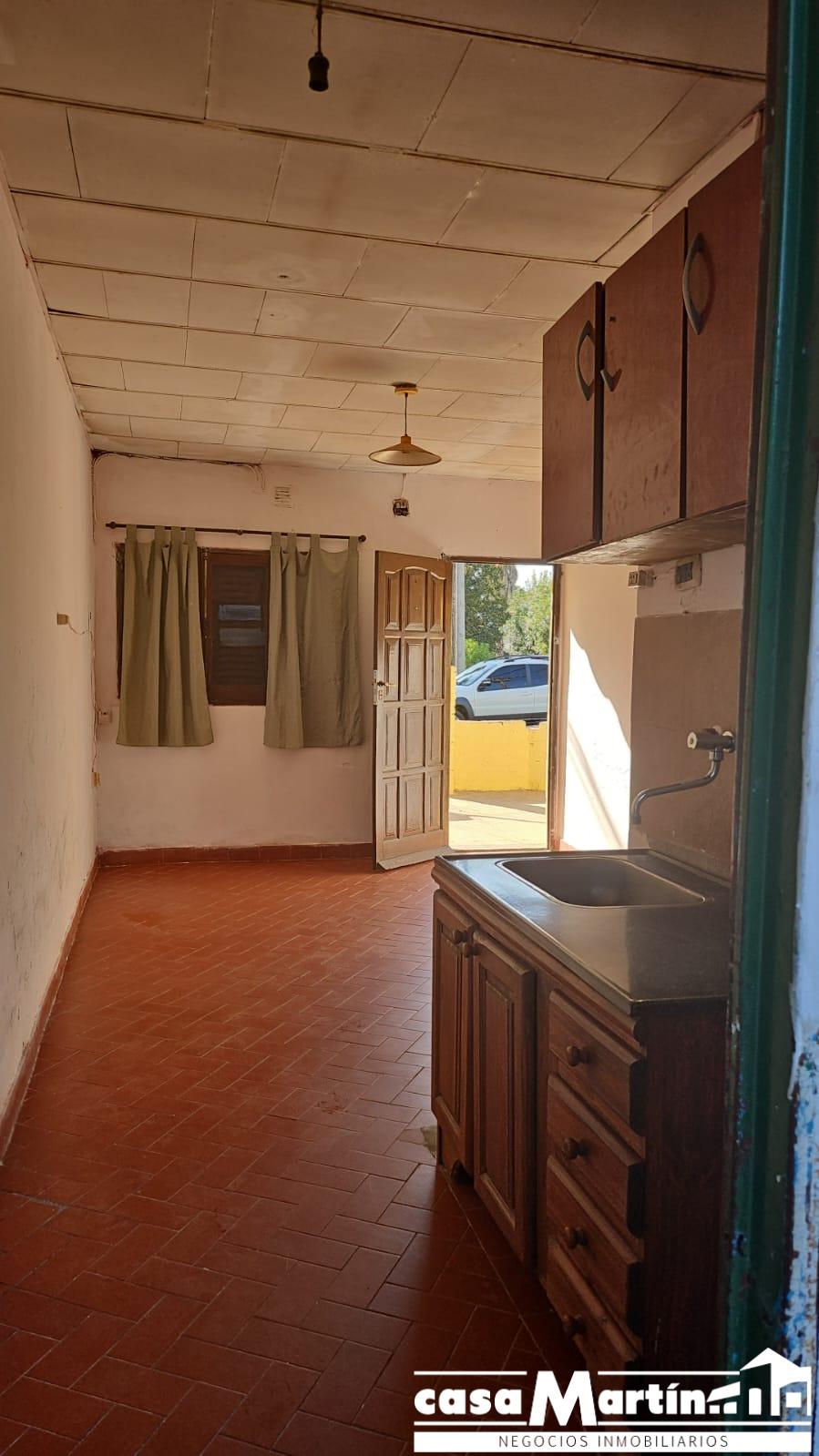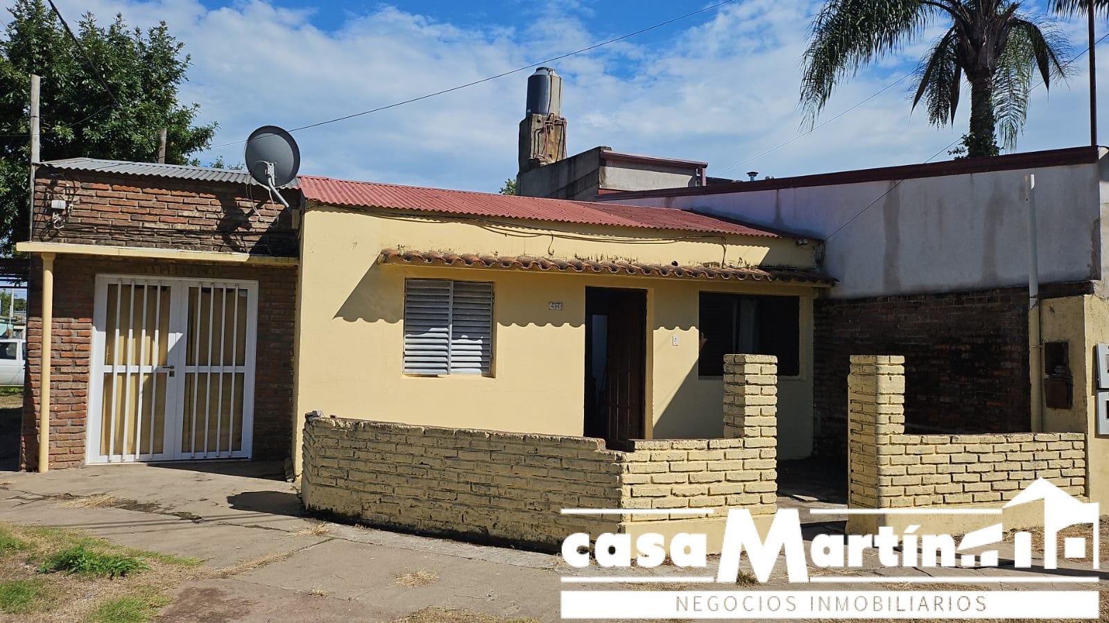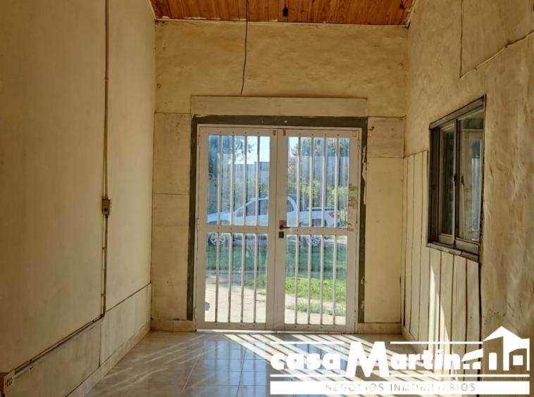 Casa en esquina , con cochera , y patio seco, cocina comedor , baño , dos dormitorios , y un local que funcionalmente puede ser otro dormitorio.