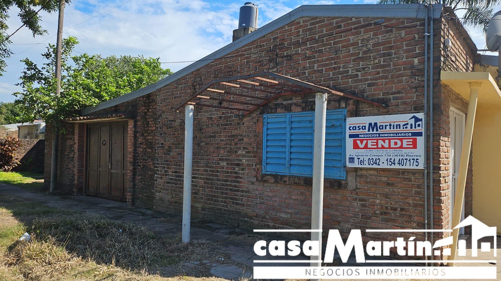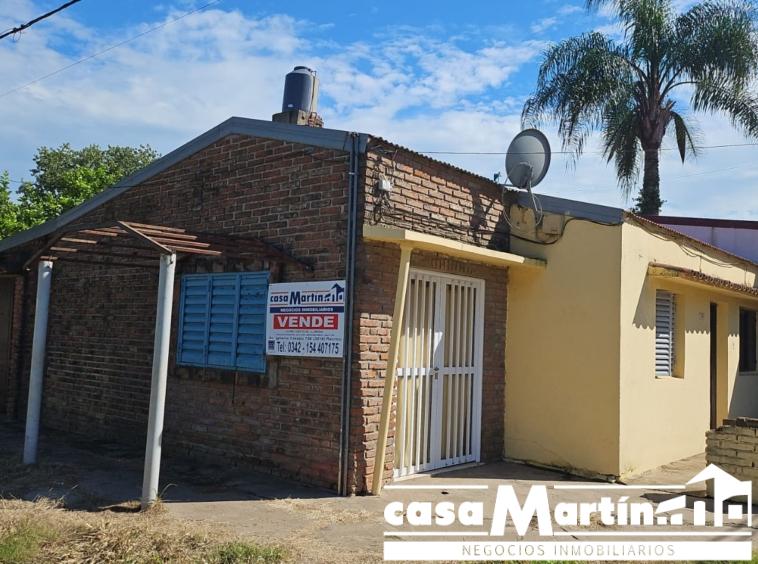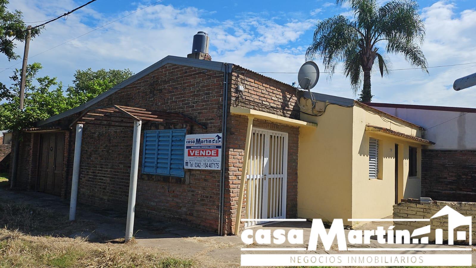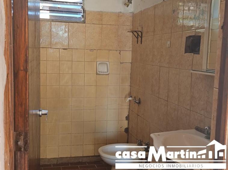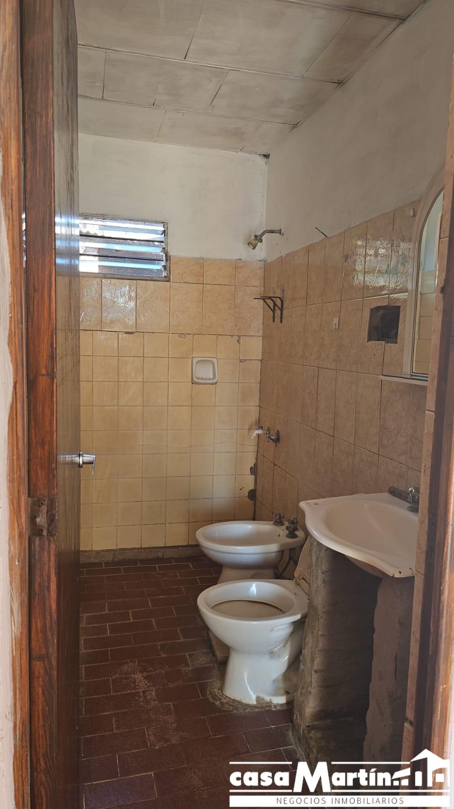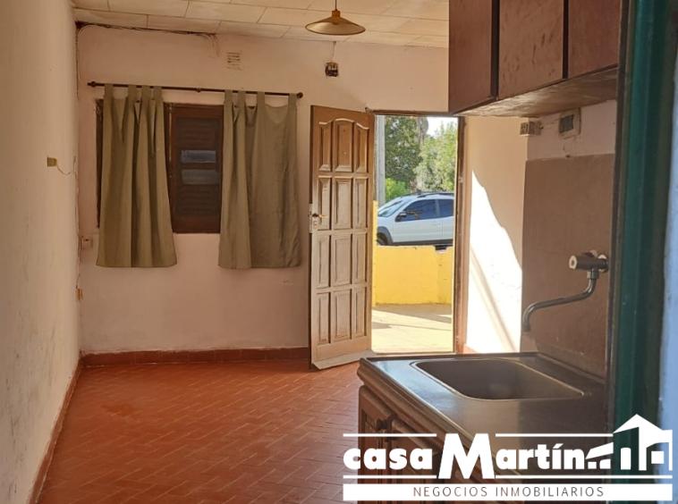 Casa en esquina , con cochera , y patio seco, cocina comedor , baño , dos dormitorios , y un local que funcionalmente puede ser otro dormitorio.